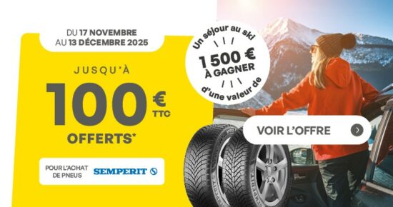 Du 17 novembre au 13 décembre, jusqu’à 100€ offerts pour l’achat de pneus de la marque Semperit et un séjour […]